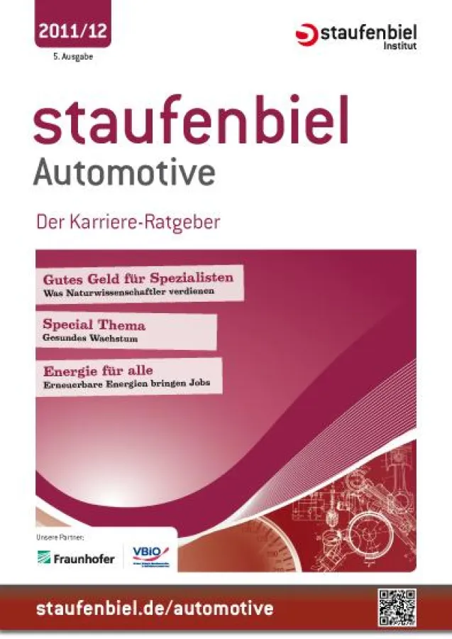Staufenbiel Automotive ist der Ratgeber für alle Absolventen, die ihre Zukunft in der Automobil- und Zulieferindustrie sehen. Das Heft erscheint jährlich mit einer Auflage von 16.000 Exemplaren und wird direkt an den Hochschulen verteilt.