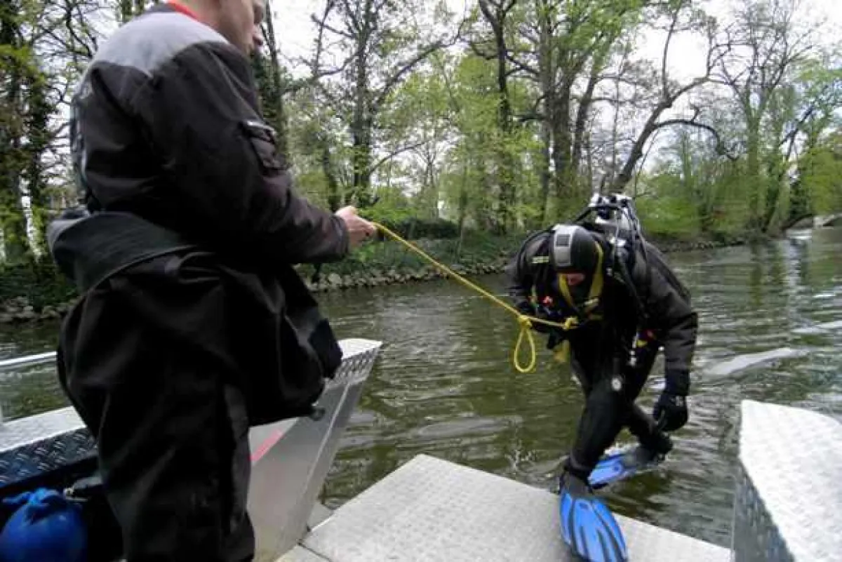 Nach Zielsetzung und Aufgabenverteilung im Briefing sondierte das Sonar-Boot den Kanal und sicherte die Wrackstelle ab, woraufhin das Jetboot als Plattform mit den Tauchern eine sichere Position einnahm. In sehr trübem Wasser gingen die Taucher mit nahezu 0 Sicht tastend vor. Daraus resultierten Skizzen der Wrackstelle, die, besser als ein Sonar-Bild, Lage und Beschaffenheit des Wracks wiedergeben und deutlich machten, dass das mit Sand und Geröll verschüttete Boot an dieser Stelle schon einige Jahre liegt.