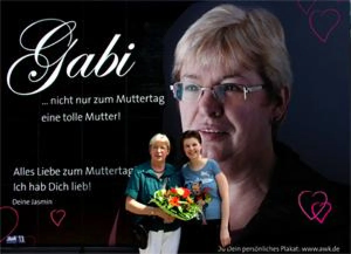 Nachdem klar wurde, dass die 27-Jährige zu den glücklichen Gewinnern dieser Aktion zählt, erfolgte die Abstimmung mit der Grafikabteilung um das Plakatmotiv zu gestalten. Das Ergebnis wusste zu überzeugen und rührte die Mutter Gabi zu Tränen: „Meine Tochter war schon immer für eine Überraschung gut, aber dass sie eine riesige Plakatwand mit ganz individuellen Muttertagsgrüßen belegen lässt, das hätte ich ihr nicht zugetraut. Verrückt!”