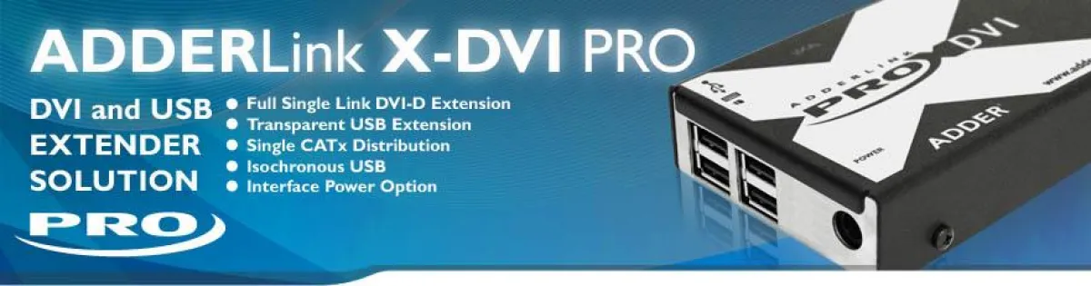 BERLIN, Mai 2011: ADDER TECHNOLOGY, Spezialist für Konnektivitätslösungen, kündigt die Verfügbarkeit des AdderLink X-DVI PRO an. Als Nachfolger des ursprünglichen AdderLink X-DVI bietet der X-DVI PRO Extender eine transparente USB-Übertragung und die gesamte DVI-Bandbreite über ein einzelnes Kabel. X-DVI PRO ist die zweite Generation der DVI-Extender und bietet längere Übertragungsdistanzen, verbesserte USB-Übertragung und eine schnellere Installation.