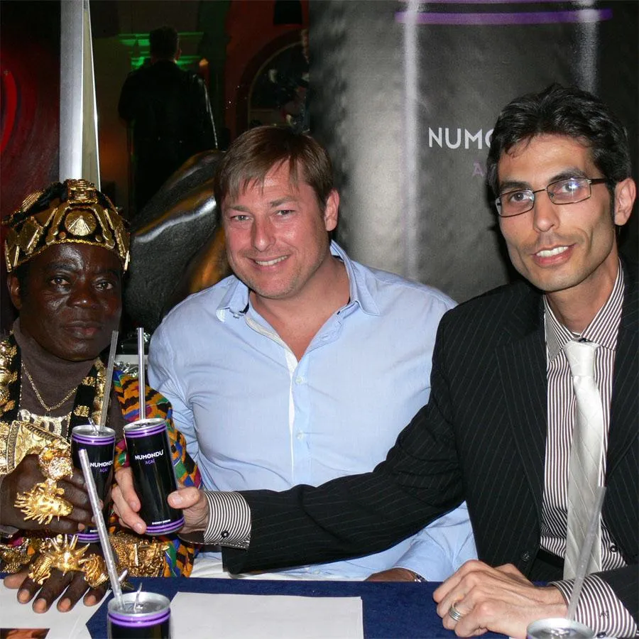 Schon vor der Gala, beim Charity-Dinner, war der neue, gesunde Energy-Drink „Numondu Açai“ in aller Munde – als Getränk ebenso wie als Gesprächsthema! Denn König Bansah, der mit vollem Namen „Togbui Ngoryifia Kosi Olatidoye Céphas Bansah“ heißt und eigentlich ein überzeugter Tee-Trinker ist, leerte gleich mehrere Dosen des „Energy-Drinks mit der Kraft der Tropen“ und schüttete zur Verblüffung der Gäste am VIP-Tisch am Ende sogar noch etwas von dem Energizer in seinen Tee. „Jetzt habe ich sogar meinen Numondu-Tee“, verkündete der Monarch und freute sich sichtlich über die allgemeine Heiterkeit, die er damit am VIP-Tisch auslöste.