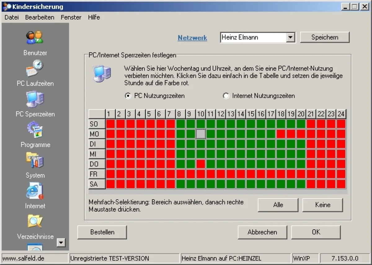 Die Sorgen der Eltern sind Dierk Salfeld von der Salfeld Computer GmbH bereits seit langem ein Begriff: Seit über sieben Jahren entwickelt Salfeld die Windows-Software Kindersicherung, von der jedes Jahr eine neue Version erscheint. Einmal installiert, stellt sie die Regeln auf, die festlegen, was ein Kind am Computer darf - und was nicht. Dabei ist es möglich, individuelle Profile gleich für mehrere Benutzer aufzustellen. So wird etwa sichergestellt, dass das ältere Kind mehr am Computer "darf" als das jüngere.