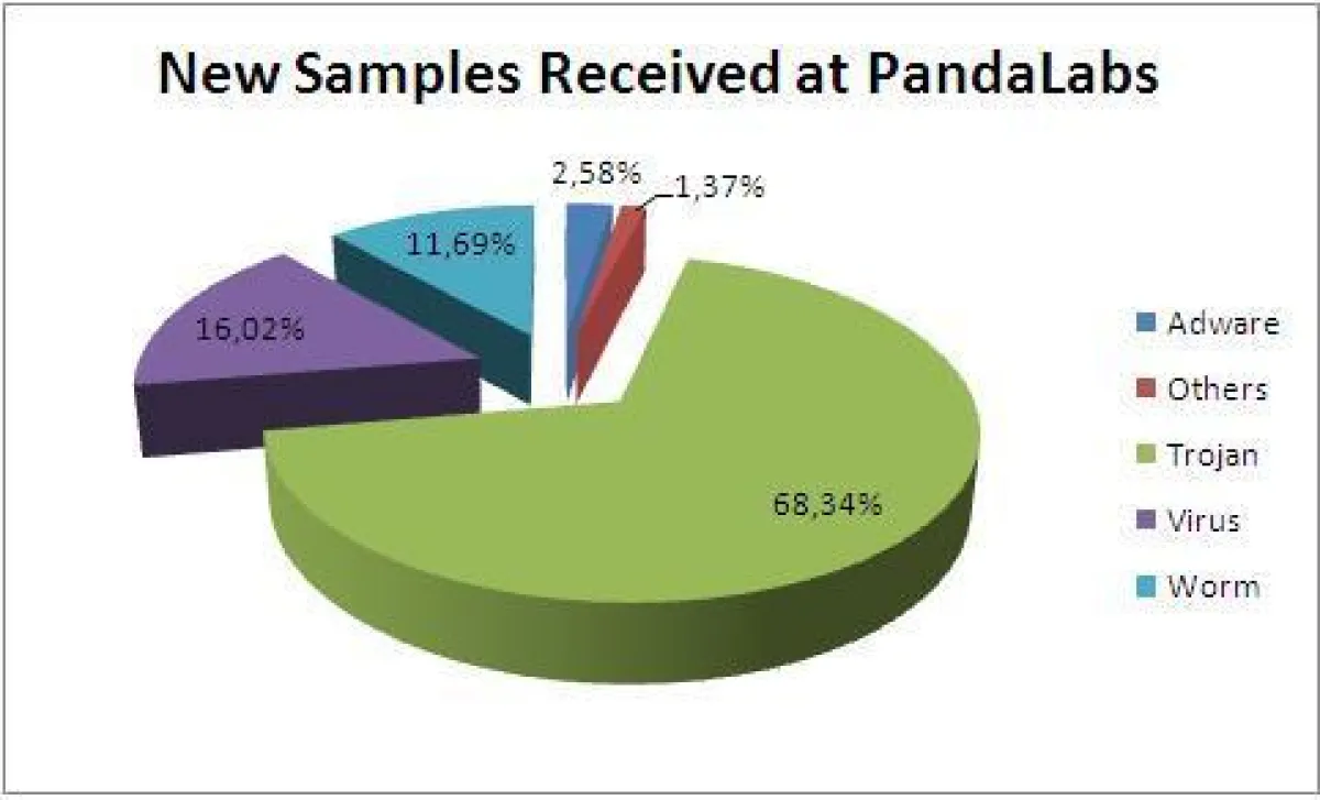 Auch bei den meisten verursachten Infektionen stehen Trojaner ganz oben im Ranking. Sie zeichneten sich für 63 Prozent aller Infektionen verantwortlich. 10 Prozent gingen auf das Konto von Viren und 9 Prozent aller verseuchten Computer wurden durch Würmer kompromittiert. Obwohl Adware nur 1,37 Prozent aller neu entdeckten Schadprogramme ausmachten, waren sie die Verursacher von weiteren 9 Prozent aller Infektionen, was bedeutet, dass im Vergleich zu den anderen Malware-Arten zwar viel weniger neue Exemplare programmiert werden, sie jedoch massiv verbreitet werden.