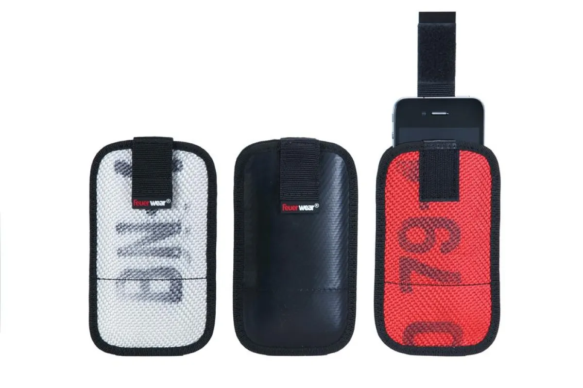 Jedem das Seine – dem iPhone das Beste: Aufdrucke von Prüfnummern, DIN-Normen, Schlauchlängen sowie die Spuren von unterschiedlichsten Einsätzen machen jedes Feuerwear-Produkt einzigartig.