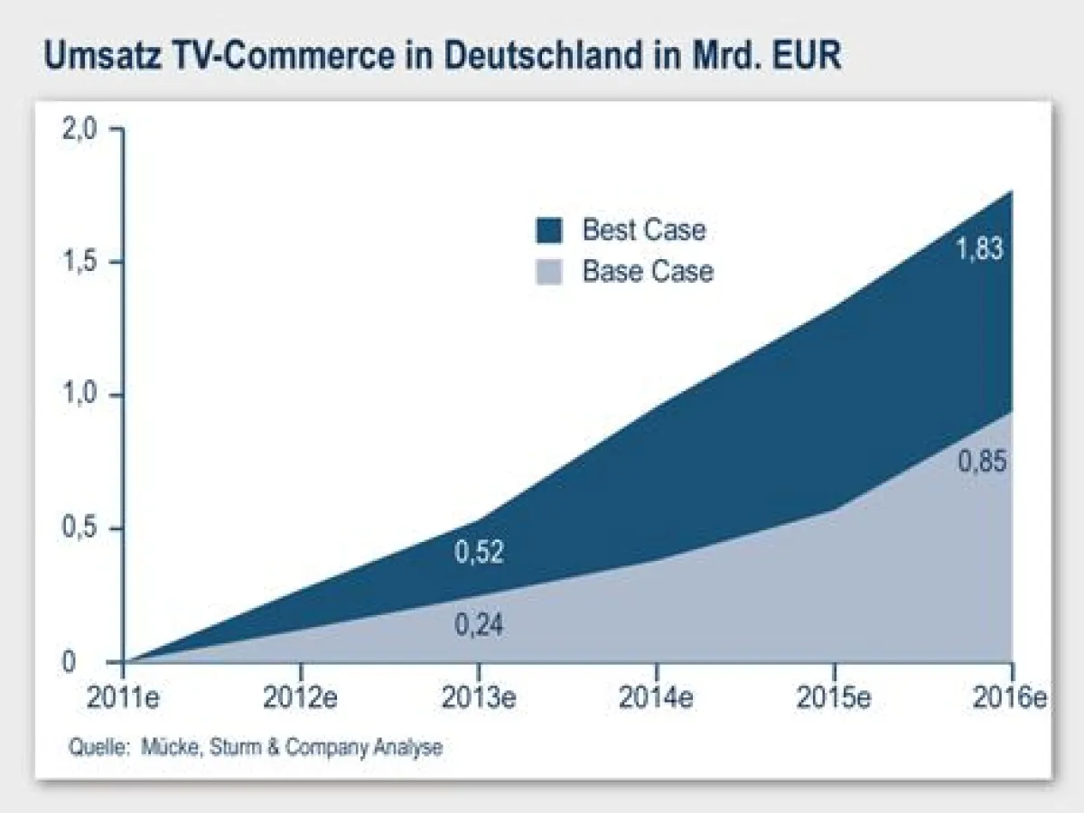 Das interaktive Fernsehen steht schon lange in den Startlöchern – der Durchbruch blieb bislang aber aus. Der Erfolg internetfähiger Fernseher kann dies ändern: Erstmals stehen die Chancen gut und ein Milliardenmarkt eröffnet sich damit speziell für TV-Commerce. In einer aktuellen Analyse geht die Managementberatung Mücke, Sturm & Company (MS&C) von bis zu 1,83 Mrd. Euro Umsatz mit TV-Commerce im Jahr 2016 aus. Onlineshops und TV-Sender können als Key Player am meisten profitieren. MS&C hat die Erfolgsfaktoren in diesem neuen Markt identifiziert und zeigt wie E-Commerce-Anbieter auf ein hybrides Endgerät gelangen. „TV-Commerce befindet sich in einer frühen Marktphase. Marktteilnehmer sollten sich jetzt positionieren, um zukünftig am Umsatz partizipieren zu können“, so die Empfehlung von Patrick Sturm, Managing Partner bei Mücke, Sturm & Company.