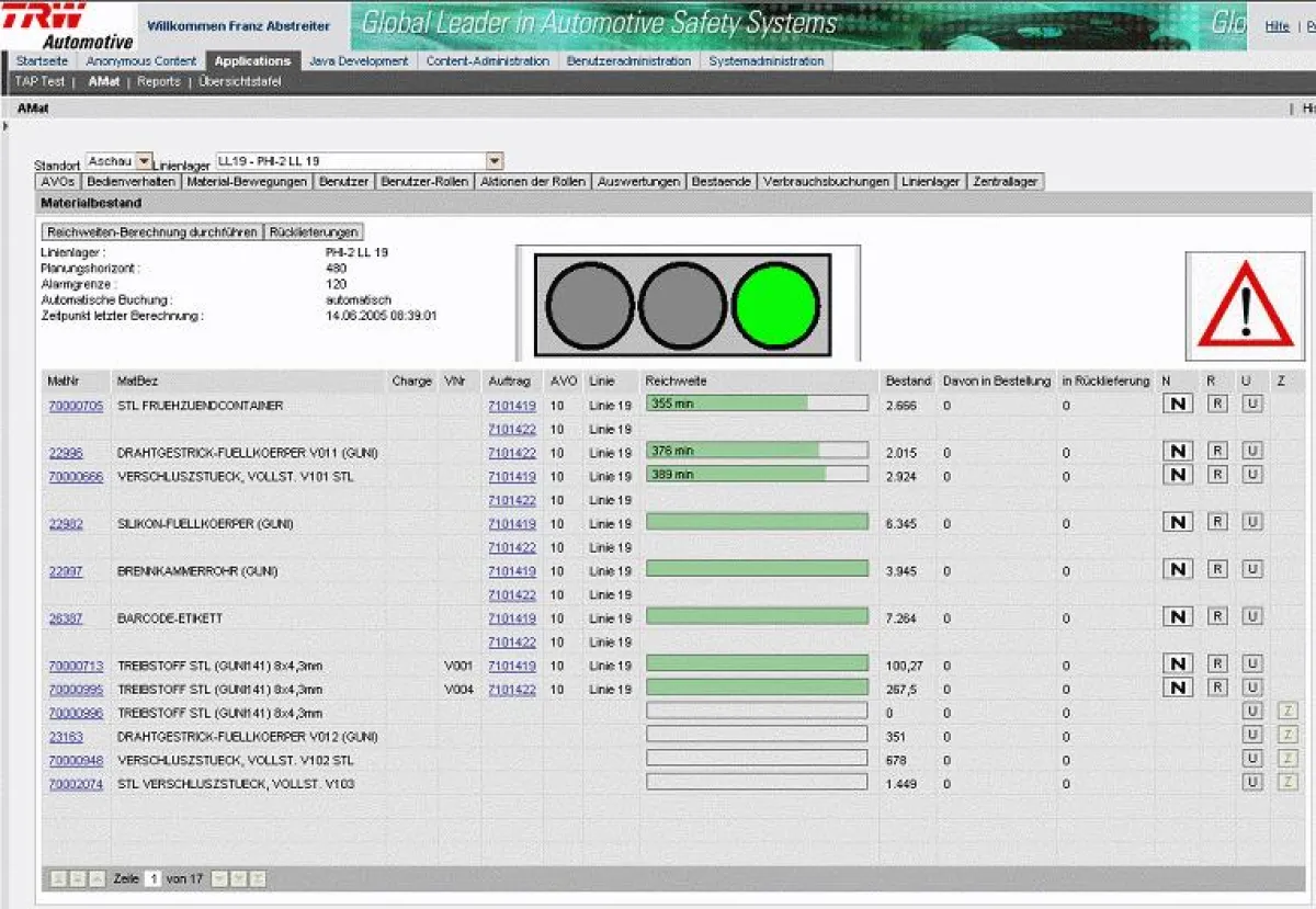 Die Anforderungen, die TRW an das IT-Projekt gestellt hatte, wurden voll erfüllt: Durch die vertikale Integration von ERP- und Produktionssystemen erreichte man einen automatisierten, fehlerfreien Bestellprozess in der Produkti-onslogistik, eine Just-in-time-Versorgung mit Verbrauchsmaterialien, eine große Akzeptanz bei den Mitarbeitern und eine verringerte Kapitalbindung aufgrund der optimierten Materialwirtschaft. Zusätzlich wurde damit der Grundstein gelegt, um in Zukunft auch die kundenorientierten Geschäftsprozesse webbasiert integrieren zu können.
