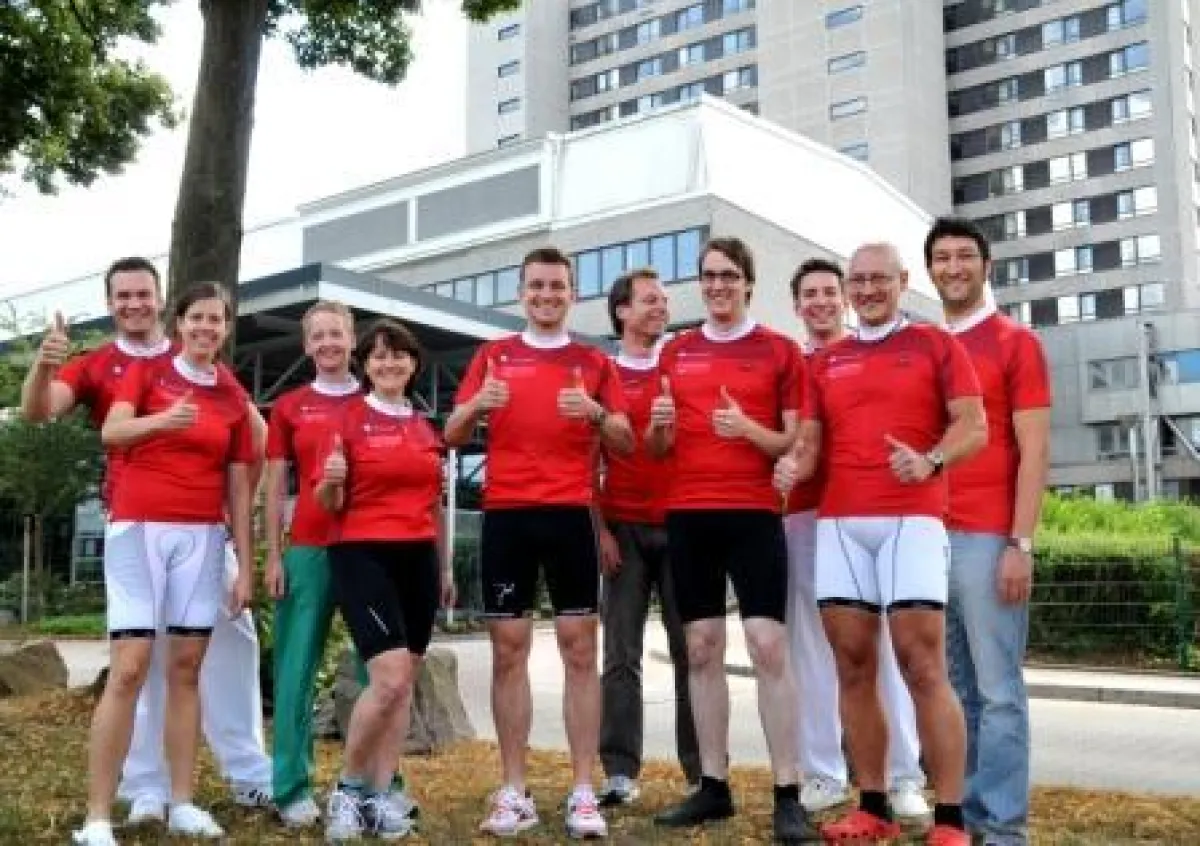 Auf die Plätze, fertig, Startschuss: Auf dieses Kommando freuen sich alle zwölf Mitarbeiter/innen des Universitätsklinikums Knappschaftskrankenhaus Bochum, wenn damit am Sonntag, 31. Juli 2011, der diesjährige Sparkassen Giro eingeläutet wird. Denn dann zeigt sich, ob sie Waden, Oberschenkel und Co. fleißig genug trainiert haben. Als „Team Knappschaftskrankenhaus“ starten die Zwölf in ihren roten Trikots um 8 Uhr am Südring mit dem 25 Kilometer langen Rundkurs, den sie gleich zweimal hintereinander bewältigen wollen.