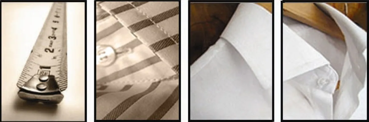 Maß genommen wird per Hand in 7 Schritten. Dies garantiert den perfekten Sitz der Maßkleidung. Der Kunde läßt sich innerhalb von 3-4 Wochen aus über 100 verschiedenen Stoffen, diversen Hemddesigns, zehn Kragenformen, acht verschiedenen Manschetten und neun unterschiedlichen Taschen sein individuelles Hemd fertigen. Maß genommen wird ganz bequem in der Wohnung oder Büro des Kunden.