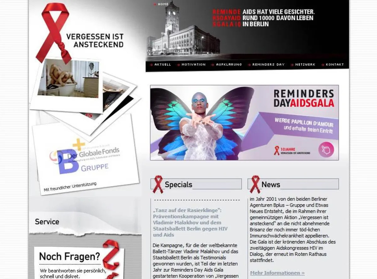 Die Aktion „Vergessen ist ansteckend“ blickt in diesem Jahr auf 10 Jahre erfolgreiche Kampagnenarbeit gegen das Vergessen von AIDS zurück. Den Höhepunkt dieses 10. Jahres bildet die „Reminders Day Jubiläumsgala“ am 27. August 2011, um 19:30 Uhr im Berliner ewerk. Unter der Schirmherrschaft des Regierenden Bürgermeisters von Berlin, Klaus Wowereit, wird es wieder eine unvergessliche Gala-Nacht geben. Die glamouröse Benefizveranstaltung findet als krönender Abschluss des Kongresses HIV im Dialog statt, welcher in diesem Jahr unter dem Motto „Liebe?Pflicht. Die Liebe in Zeiten von AIDS. Gesundheitliche und gesellschaftliche Herausforderungen gemeinsam meistern“ tagt.