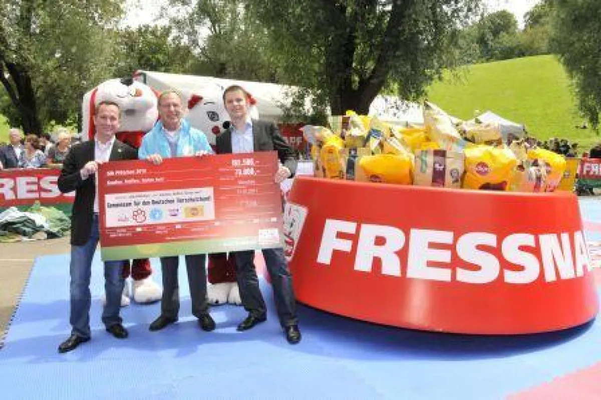 Symbolisch spendete Fressnapf zusammen mit Pedigree und Whiskas obendrein auch den Inhalt des größten Fressnapfs der Welt – insgesamt zwei Tonnen Hundefutter – an den Deutschen Tierschutzbund, namentlich an das Tierheim München.