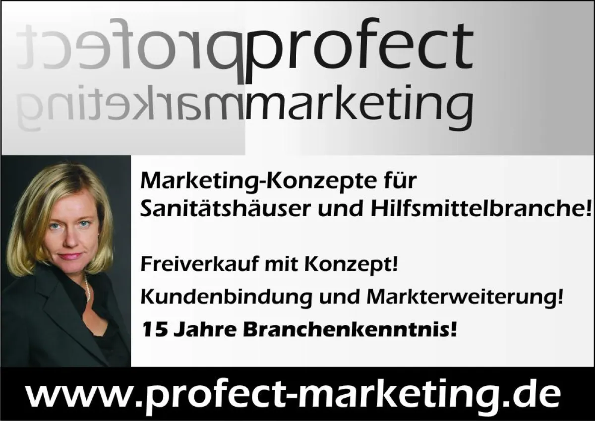 Der Vorteil für das Sanitätshaus besteht neben der langjährigen Branchenkenntnis von Profect Marketing vor allem in der externen Abwicklung. Das Tagesgeschäft wird nur punktuell berührt und erst nach Abschluss findet eine Umstrukturierung des Unternehmens statt. Näheres ist auch unter www.profect-marketing.de oder unter Tel. 02507/573063 zu erfahren.