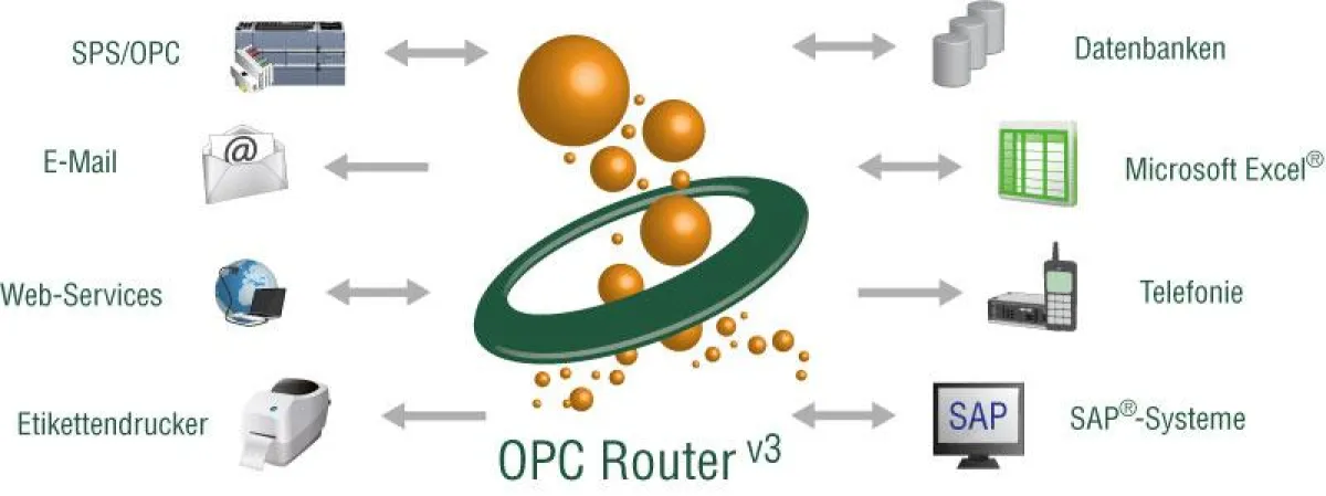 Der OPC Router nutzt die Standardschnittstellen der beteiligten Systeme und eignet sich neben der kompletten SPS-MES-ERP-Integration auch zur schnellen Verbindung bestehender Insellösungen.