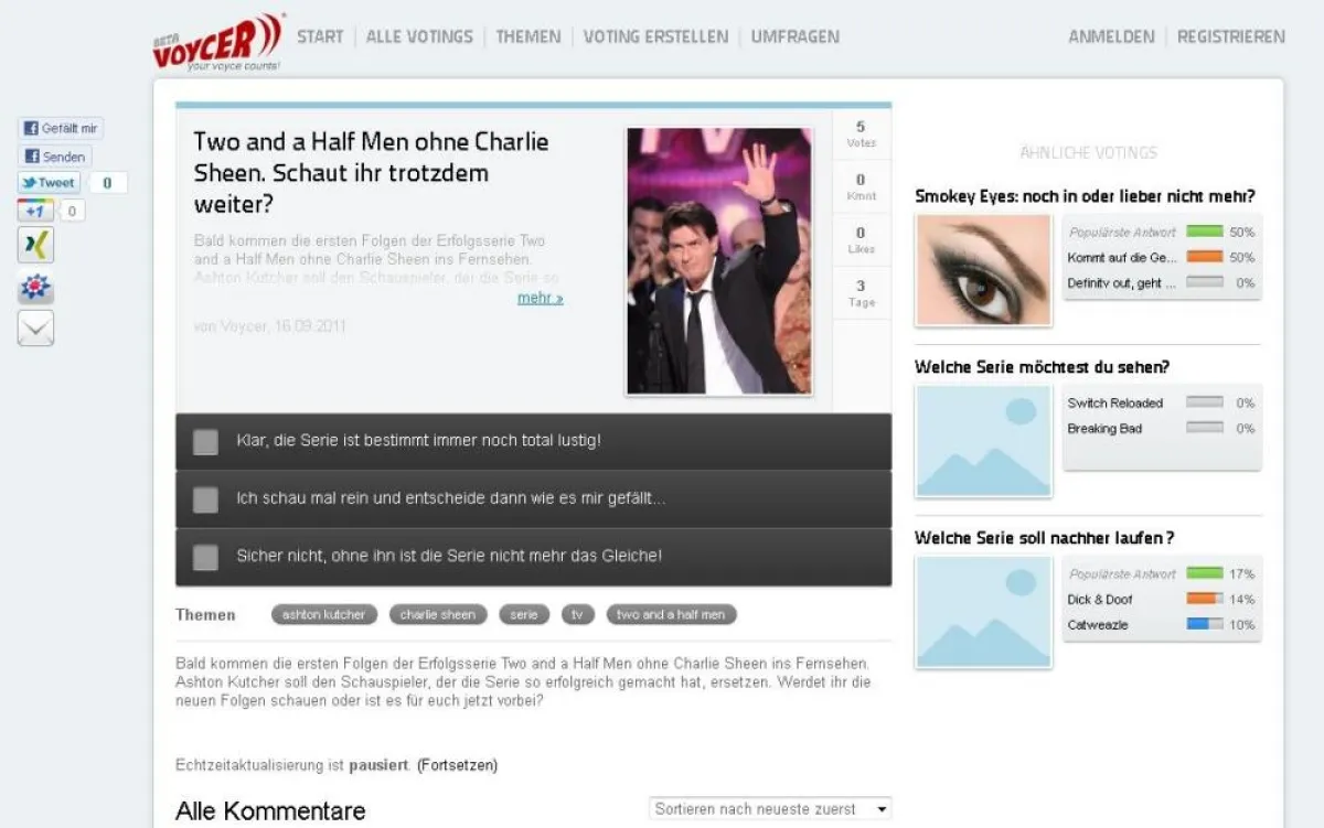 Mit dem Start der offenen Beta-Version von voycer.de können Nutzer jetzt noch besser mit-einander interagieren. Social Tagging macht brisante Themen schnell sichtbar, alle Voting-Ersteller haben die Möglichkeit, Bilder und Kommentare in die Votings einzubauen. Über einen intuitiven Vorgang können die Abstimmungen direkt vom Portal aus in andere Social Media Kanälen verbreitet werden. Mit redaktionellen Umfragen will das Portal, User animie-ren, Consumer-to-Consumer-Votings zu aktuellen Themen zu erstellen und zu verbreiten.