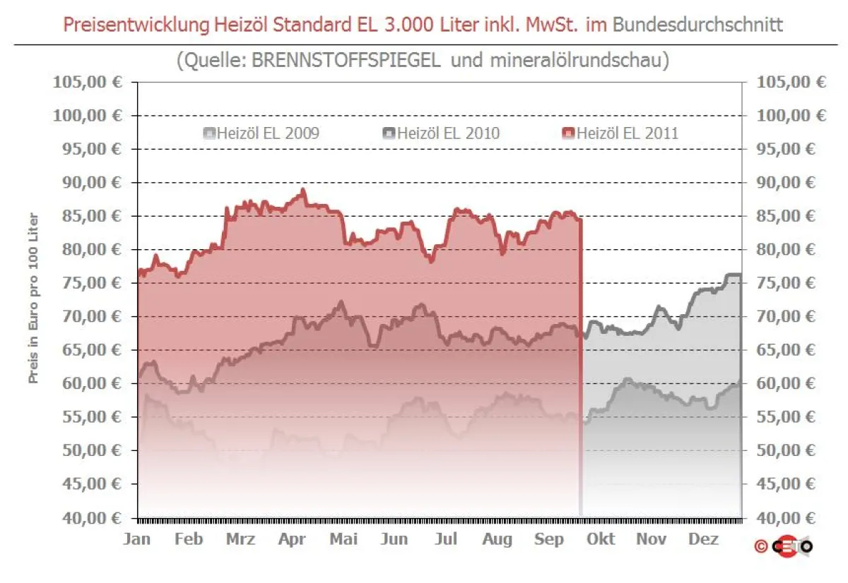 (openPR) Der Abwärtstrend beim Öl blieb auch heute intakt. Die Kruse gabendeutlich nach, deutlicher als der Heizölpreis hierzulande. Das lag zum einen am nicht ganz so stark von den Verlusten betroffenen Brent, zum anderen am weiterhin schwachen Euro. Der Durchschnittspreis für die 38. KW liegt nun bei 84,98 Euro. Gegenüber dem Wochenbeginn ist Heizöl um 1,22 Euro günstiger.