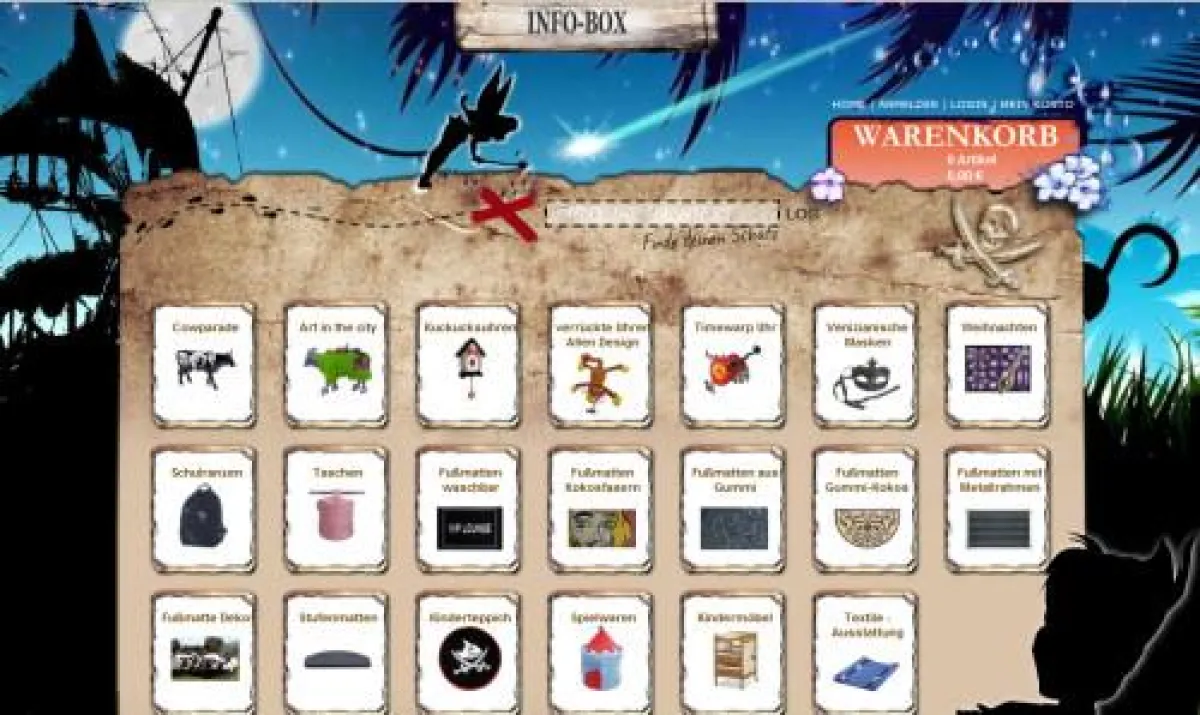 Fußmatten, Cowparade und Babyerstausstattung sind die Kernthemen. Die Navigation in einem Onlineshop findet üblicherweise in einem 2 oder 3 Spaltigen Design statt. Aktuell werden Onlineshops im 2 spaltigen Design bevorzugt dargestellt. Links finden sich die Informationen und die Navigation mittels Text.