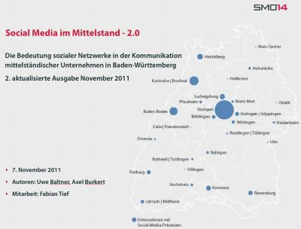Die komplette zweite Auflage der SMO14-Studie „Social Media im Mittelstand – Die Bedeutung sozialer Netzwerke in der Kommunikation mittelständischer Unternehmen in Baden-Württemberg“ kann jetzt unter unten stehender Adresse bestellt werden.