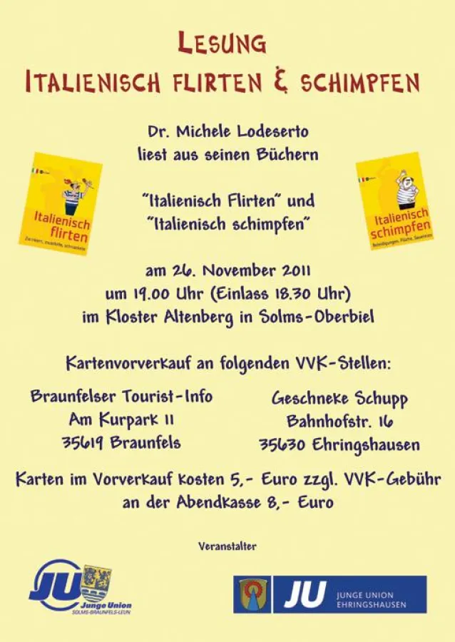 Seien Sie dabei und entziehen Sie sich für einen Abend dem kalten deutschen Herbst, um in die Welt des deutsch-italienischen Flirtens und Schimpfens einzutauchen.