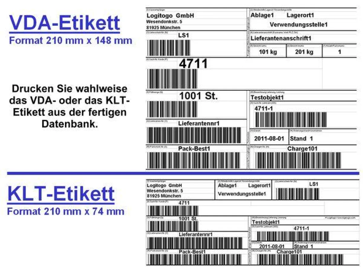 - VDA- und KLT- Etiketten können abwechselnd über eine einzige integrierte Datenbank ausgedruckt werden.