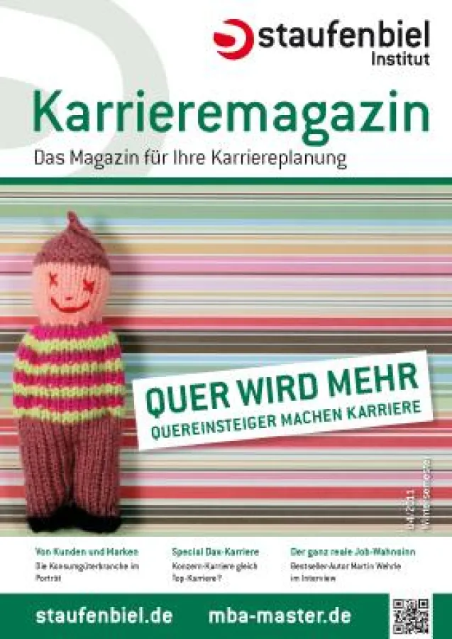 Köln, im November 2011 – Die November-Ausgabe des Staufenbiel Karrieremagazin: Karriere im Dax-Unternehmen, die Konsumgüterindustrie im Branchenporträt und Bestseller-Autor Martin Wehrle im Interview.