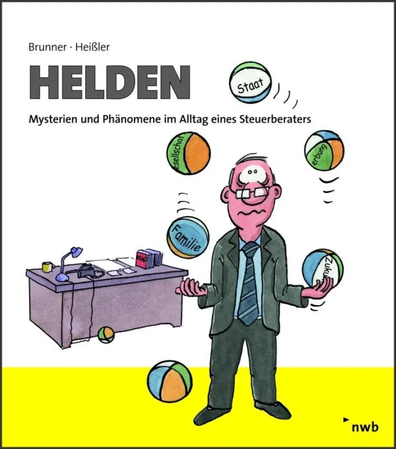 Nach "Steuerberater - Helden mit Anzug und Krawatte" und "Die Suche nach dem idealen Mandanten" ist jetzt mit "Helden - Mysterien und Phänomene im Alltag eines Steuerberaters" der dritte Streich des bekannten Autorenteams Brunner und Heißler erschienen. "Das Autorenduo versteht es, mit einem Augenzwinkern Alltägliches witzig, kreativ und mit viel Verstand zu zeichnen. Für alle Steuerprofis, die sich selbst nicht immer nur ernst nehmen und auch ihren Mandanten einen humorvollen Blick hinter die Kulissen ermöglichen möchten", erläutert Rolf Müller, Geschäftsleiter des Programmbereichs beim NWB Verlag.