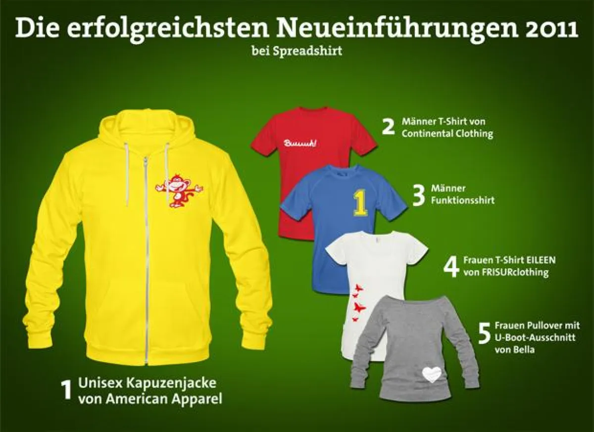 Besucher: Bis Ende November 2011 besuchten 16 Millionen unique Visitors Spreadshirt. Statistisch war jeder fünfte Deutsche in den letzten 11 Monaten auf der Spreadshirt Plattform. In den USA hat jeder elfte die Spreadshirtseite besucht.