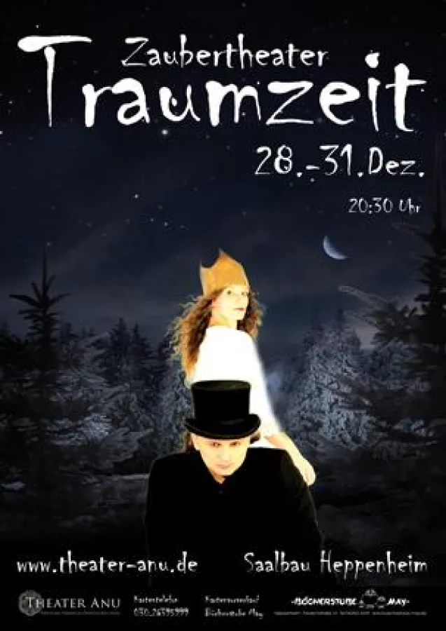 Traumzeit Saalbau. Neues Winter-Theaterfestival in Heppenheim Vom 27. bis 31. Dezember findet erstmals in Heppenheim das „Traumzeit-Festival“ statt. Theater Anu, in Heppenheim gegründet und in Berlin beheimatet, lädt zwischen den Jahren zu leisen und sinnlichen Veranstaltungen in das legendäre Saalbau-Kino ein. Zaubertheater, Kindertheater und ein Konzert …