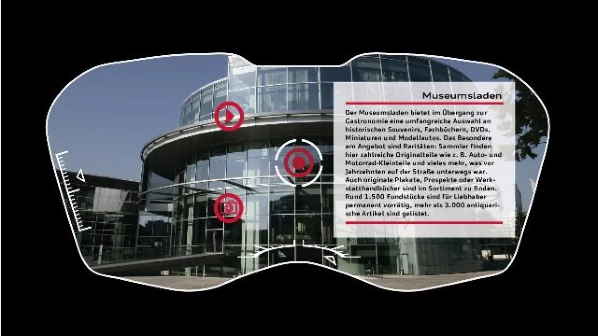 Die Besonderheit der eigens für Audi entworfenen medialen Fernrohre ist die "Augmented Reality" Funktionalität. Die Person, die durch das Fernrohr sieht, kann damit die unterschiedlichen Bereiche des Forums anvisieren und erhält dann zusätzliche Informationen wie Fotos, Videos und Texte über den jeweiligen Bereich. Der zentrale Standort auf der Audi Piazza ermöglicht einen Rundumblick auf alle wichtigen Gebäude am Hauptstandort der AUDI AG.