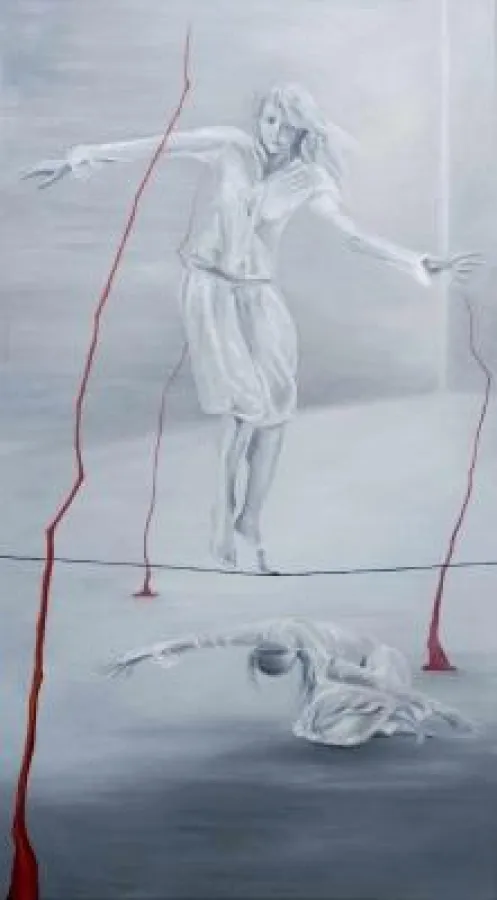 Bei der Finissage am Sa. 31.03. 20.00h liest die Autorin aus ihrem psychologischen Roman SEILTÄNZER . Es handelt von Menschen auf dem “Seil des Lebens“ zu balancieren.