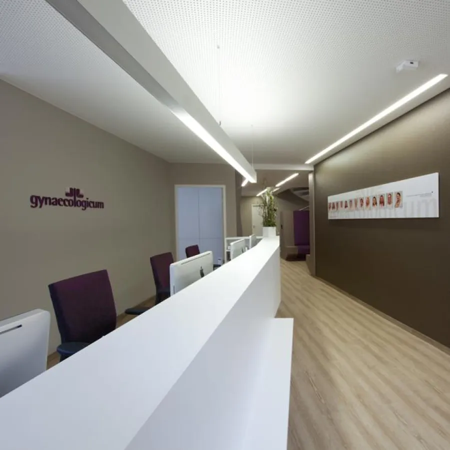 Auf 450 m² und zwei Ebenen eines ehemaligen kassenärztlichen Beratungscenters hat sich die von vier Frauenärzten neugegründete Gemeinschaftspraxis „Gynaecologicum Darmstadt“ niedergelassen.