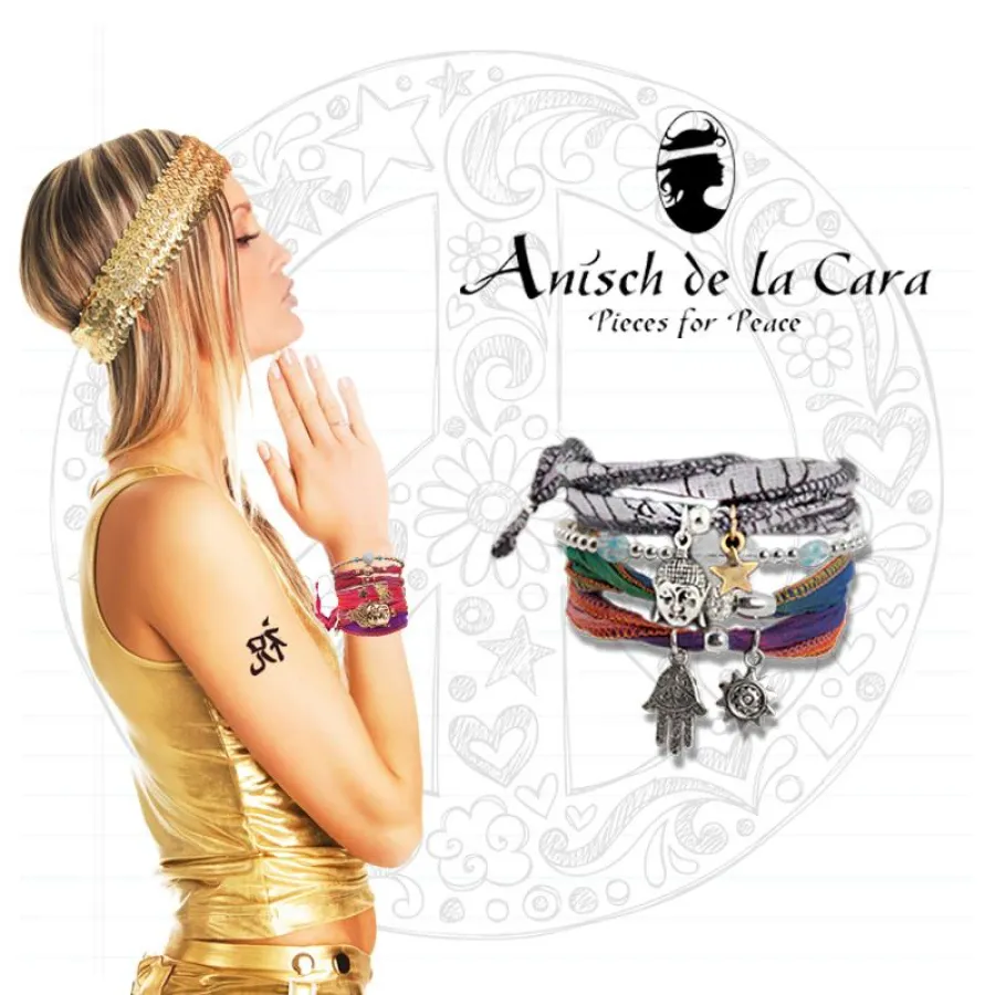 Hochwertig vergoldete und versilberte Anhänger, Symbole und Glücks-Charms setzen neben Swarovski-Kristallen funkelnde Akzente, die jeder von Anischs Kreationen eine Extraportion Glanz verleihen – und die größenverstellbaren Verschlüsse sorgen zusätzlich für Tragekomfort.