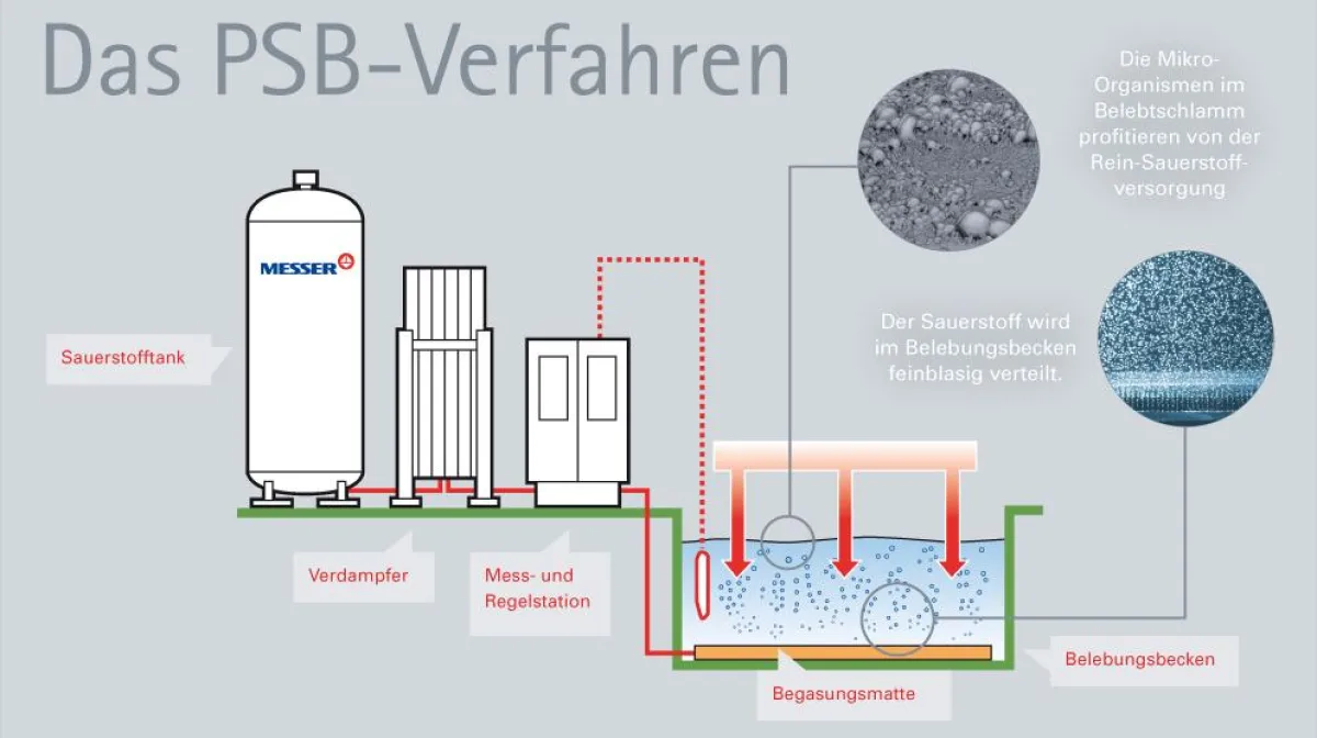 Messer installierte auf dem Grund der Klärteiche weitflächig feinporige Begasungsschläuche, aus denen kontinuierlich reiner Sauerstoff in kleinsten Blasen austritt, der sich schnell in Wasser löst. Die Begasungsschläuche bieten noch einen weiteren Vorteil: Bei ihrem Einsatz wird keine Energie benötigt. Bis zu der Erweiterung der Kläranlage wird Südzucker in Ochsenfurt das PSB-Verfahren weiterhin anwenden.
