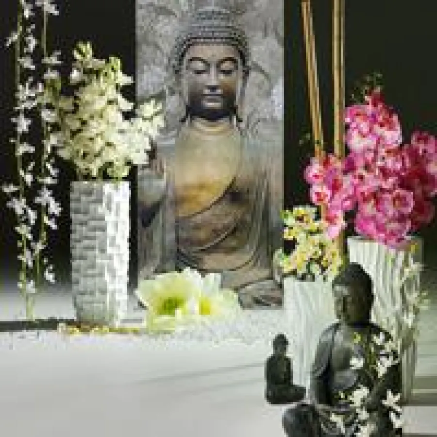 Der Buddha wird im Verständnis der westlichen Welt mit einem Wesen gleichgesetzt, dass vollkommene innere Ruhe und Ausgeglichenheit erreicht hat. Als Dekorationselement gehört er im Wellness-Bereich unbedingt dazu, sei es als Banner im Hintergrund oder als sitzende Figur in naturgetreuer Stein-Optik. In Kombination mit Bambusstangen, wunderschönen Orchideenzweigen und –blüten, arrangiert in mediterranen Vasen sowie Frangipaniblüten entsteht ein Sinnbild für absolute Entspannung und Ausgeglichenheit.