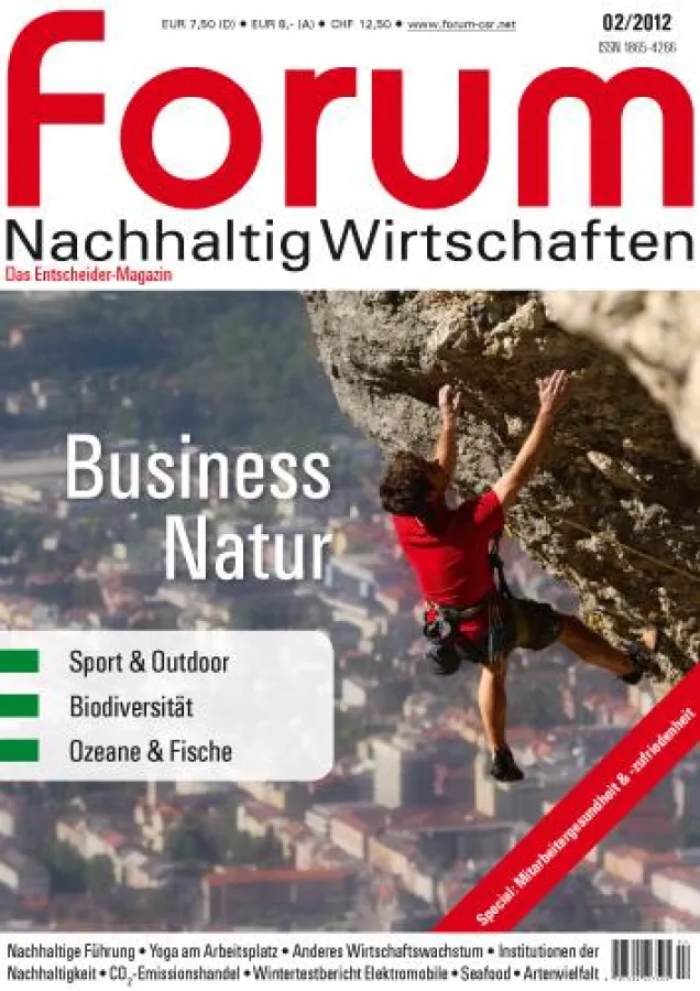 forum Nachhaltig Wirtschaften „Business Natur – Sport & Outdoor" umfasst 148 Seiten und ist zum Preis von 7,50 € zzgl. 3,00 € Porto & Versand (innerhalb Deutschlands) unter www.forum-csr.net zu bestellen und für 7,50 € auch im Buchhandel und an Kiosken erhältlich.