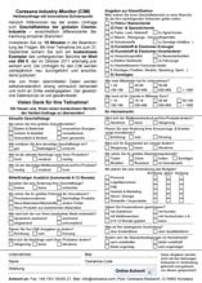 Der CIM untersucht vierteljährlich das Geschäftsklima der globalen Chemie- und Kunststoffbranche. Aus einem Pool von über 110.000 Unternehmen werden in jedem Quartal ausgewählte Firmen zur Teilnahme eingeladen. Geantwortet haben Entscheidungsträger aus 52 Ländern.