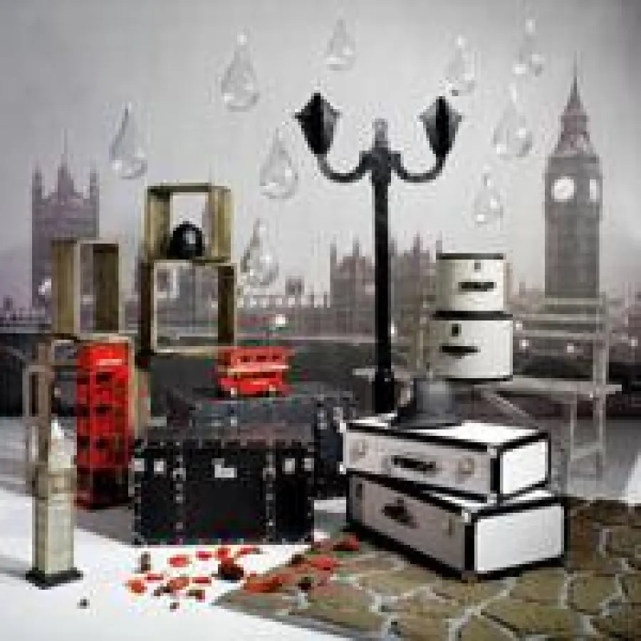 Der XXL-Banner „London Bridge“ ist ideal als Hintergrundmotiv für ein London-Schaufenster und wirkt mit der Straßenlaterne und der Holzbank im Antiklook völlig wirklichkeitsgetreu. Dazu im Vordergrund ein paar Koffersets, die typische englische Telefonzelle sowie der Londoner Doppeldeckerbus – und die Illusion ist perfekt. Fast perfekt! Denn nur zusammen mit den künstlichen Regentropfen wird das Klischee der echten Londoner Atmosphäre richtig vermittelt. Für eine poppige und quirlige Dekoration eignen sich der Textil-Banner „Underground“, eine britische Dekofahne, Bobby-Helme und die London-Sneakers ganz hervorragend.