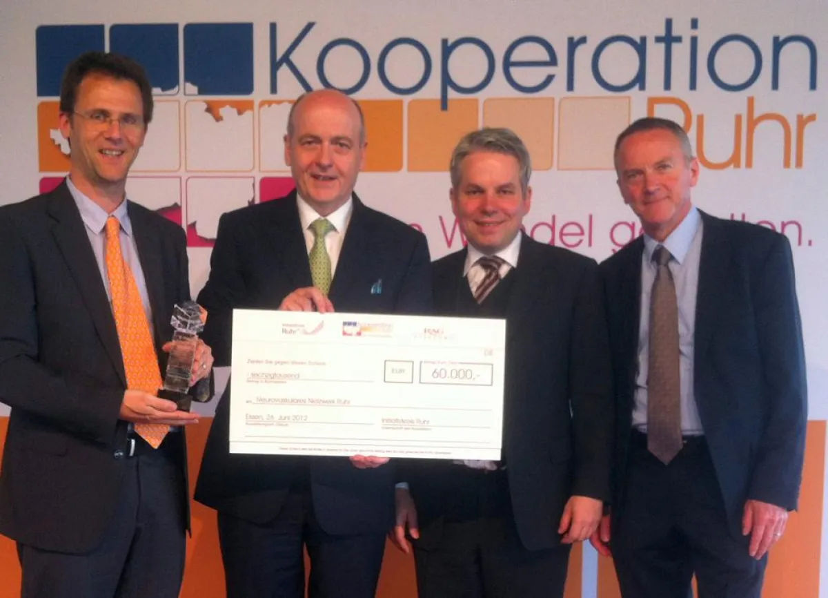 Fritz Pleitgen, Vorsitzender der Geschäftsführer der RUHR.2010 und jetzige Präsident der Deutschen Krebshilfe, begründete in seiner Laudatio das Jury-Urteil: „Das Neurovaskuläre Netzwerk Ruhr hilft Menschenleben zu retten und Patienten vor schlimmen Folgeschäden zu bewahren. Die Kooperation sollte als Modell neuen Denkens und Handelns für alle Bereiche Schule machen“.