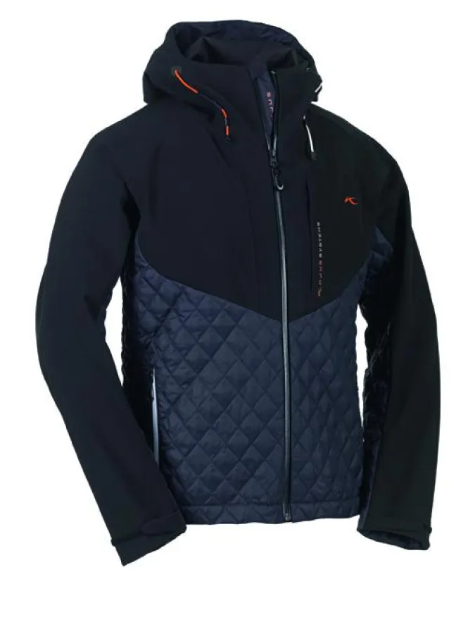 Das Equilibrium Jacket von Kjus ist ein echtes Powerpaket: An den Schultern, der Kapuze und im oberen Bereich kommt Polartec® Power Shield® Pro für erhöhte Atmungsaktivität und besten Wetterschutz zum Einsatz. Der Stoff schützt zuverlässig gegen Wind, ist extrem wasserabweisend und äußerst atmungsaktiv. In der Körpermitte sorgen gesteppte Gänsedaunen für hervorragende Isolierung und Wärme. Egal, ob zum Skifahren im Frühling oder zum Wandern bei kühleren Temperaturen: Dieses innovative und optisch überzeugende Hybrid-Jacket trägt sich sehr angenehm und macht alle Sportarten im Freien locker mit. Eine Zippergarage schützt die empfindliche Kinnpartie, zwei Brusttaschen mit Reißverschluss sorgen für Stauraum und die Kapuze ist so geschnitten, dass sie die Sicht nicht einschränkt. Die Armbündchen sind ebenso regulierbar.