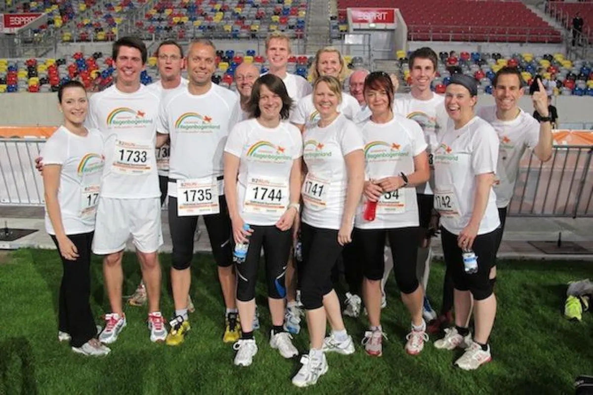 Seit 2010 ist das Kinderhospiz Regenbogenland regionaler Charitypartner des B2RUN Düsseldorf. Das Gerresheimer Haus hilft unheilbar kranken und schwerbehinderten Kindern mit einer eingeschränkten Lebenserwartung sowie deren Geschwistern und Eltern. Norbert Hüsson, Vorstandsvorsitzender des Förderverein Kinderhospiz Düsseldorf e.V.' (Regenbogenland), freut sich über die stetig gestiegene Spendensumme von B2RUN: