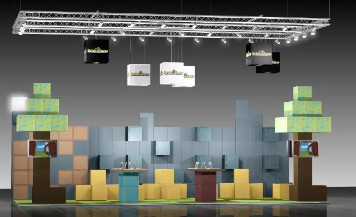 Vorbild für das Standkonzept ist das erfolgreiche Sandbox-Shooter-Game selbst. Fast alle Spielelemente bestehen aus gleichgroßen Würfeln, sie geben dem Spiel eine unverwechselbare Charakteristik. Angelehnt an dieses Konzept hat CAVUS nun Stein auf Stein gesetzt und einen aufmerksamkeitsstarken Messestand entwickelt, der das Online-Game gekonnt in der realen Welt in Szene setzt. Dabei setzen die Berliner Below-the-Line Experten und Infernum auf eine individuelle Maßanfertigung auf 5 x 10 Metern. Um den Spielbegeisterten direkt auf der gamescom die Möglichkeit zu geben, Brick-Force auszuprobieren, können bis zu acht Personen in zwei Teams gegeneinander antreten. So wird die Brick-Force-Welt am Stand Realität. Ziel ist es, die Fangemeinde zu begeistern und interessierte Messebesucher, die noch keine Erfahrung mit dem Game haben, gleich mit der Optik vertraut zu machen und zum Spielen zu animieren. Zudem wird der Brick-Force-Stand durch acht Walking Acts in und um das Messegelände promotet.