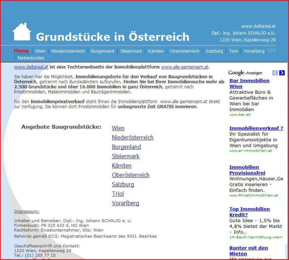 (openPR) Deltareal.at ist ein Linkverzeichnis welches eine schnelle und bequeme Suche nach Grundstücken aber auch nach allen anderen Immobilienkategorien in ganz Österreich ermögliche.