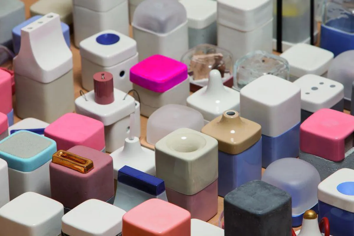 "out of the box" beschäftigt sich sowohl mit den Prinzipien, Assoziationen und Funktionen der Dose als auch mit dem Material Porzellan in Kombination mit anderen Werkstoffen. Der Versuch, das weiße Gold neu zu inszenieren und zu interpretieren mündete in der Entstehung einer Art Materialbibliothek. Diese beinhaltet weißes und farbiges Porzellan, Glas, Beton und Kunststoffe. Mittels Stecken, Klemmen, Schrauben, Kleben oder den Einsatz von Magneten und Gummibändern wurden Additionsmöglichkeiten und ungewöhnliche Öffnungs- und Schließmechanismen einer Dose erforscht.