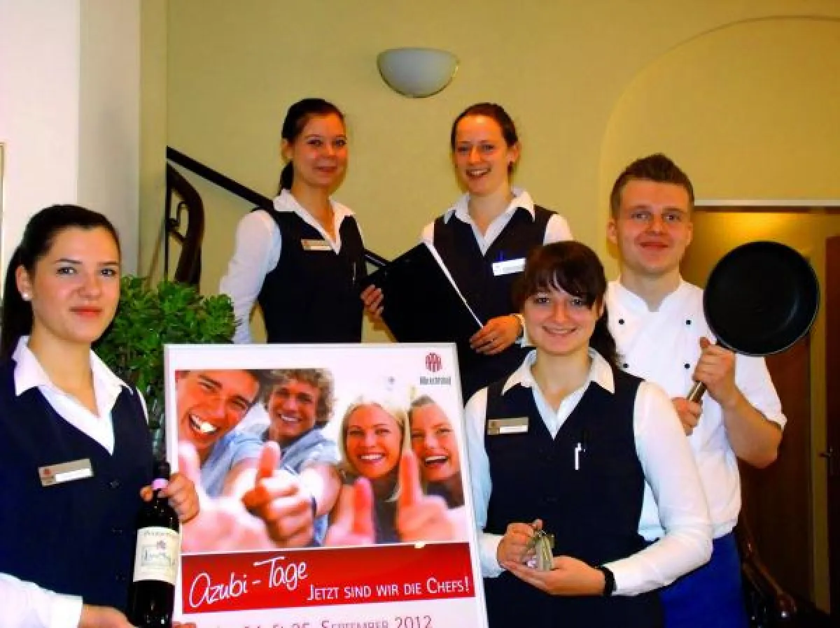Trotz dieser kleinen Panne avancierten die Azubi-Tage erneut zu einem vollen Lernerfolg. Die Organisatoren wollen damit auch das Teamwork im Haus stärken. „So ein Hotelbetrieb ist ja ein tickendes Uhrwerk mit vielen Rädchen, da kann man nicht nur ausschließlich auf seine konkrete Aufgabe fixiert sein“, unterstreicht die Ausbildungsleiterin. Deshalb sollten etwa Köche wissen, wie ein Zimmer geputzt wird, und Mitarbeiter im Front-Office müssen die wichtigsten Servier-Regeln beherrschen. Das eigenverantwortliche Azubi-Management hat nach Ablauf der kurzen Chefzeit noch ein kreatives Nachspiel. Zusammen mit den Abteilungsleitern wird das Projekt ausgewertet und ein „Bester Azubi“ gekürt: diesmal Koordinatorin Jenny Müller, die nach der Ausbildung ein duales Studium mit Schwerpunkt Tourismusmanagement anpeilt.