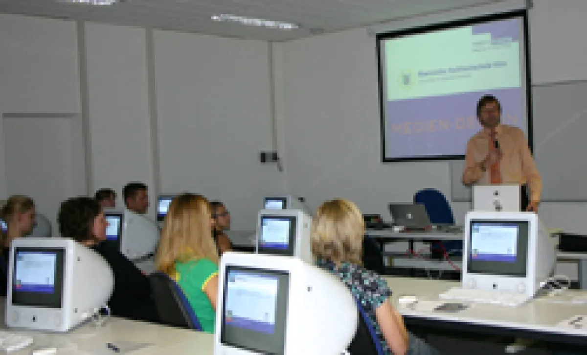 Studiengangsleiter Prof. Dr. Gertler stellt gemeinsam mit Dozenten den akkreditierten und staatlich anerkannten Bachelor-Studiengang Mediendesign vor. Er berichtet über die innovativen Lehr- und Lernmethoden sowie über die Vorteile der Internationalisierung und der Credit Points (ECTS). Mediendesigner erlernen technische, kreative und gestalterische Fähigkeiten in Kombination mit Inhalten aus der Kommunikationsforschung, Psychologie, Kunst- und Kulturgeschichte und anderen wissenschaftlichen Gebieten. Sie werden informative oder werbliche Kommunikationsvorhaben multimedial umsetzen können.