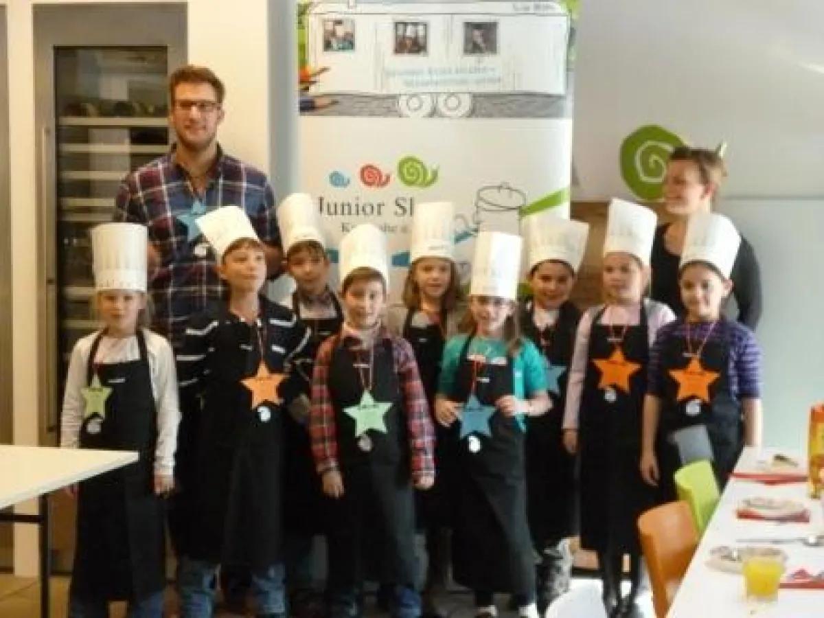 Der gemeinnützige Verein Junior Slow Karlsruhe e.V., der mit dem Karlsruher Convivium von Slow Food Deutschland freundschaftlich verbunden ist, tritt mit Engagement und Kinderspaß gegen Fertigkost und Tütensuppen an, um Kindern Koch- und Esskultur schmackhaft machen. Zwischen Januar und April 2013 wird hierzu ein Bauwagen zum Slow Mobil mit Küche inklusive Essplätzen umgebaut, der später zu Kitas und Schulen rollen wird. Acht Kinder können jeweils darin gemeinsam aus frischen Zutaten ihre Mahlzeit zubereiten und genießen, betreut jeweils von einer Köchin oder einem Koch des Slow Mobil-Teams und einem pädagogischen Betreuer. Dabei soll der Verkümmerung des Geschmackssinns und der drohenden Gewöhnung an künstliche Aromen und Geschmacksverstärker, viel zu viel Fett und Zucker in Fertiggerichten den Kampf ansagt werden, damit Kinder erleben, wie aus natürlichen, heimischen und saisonalen Zutaten schmackhafte und gesunde Speisen entstehen.