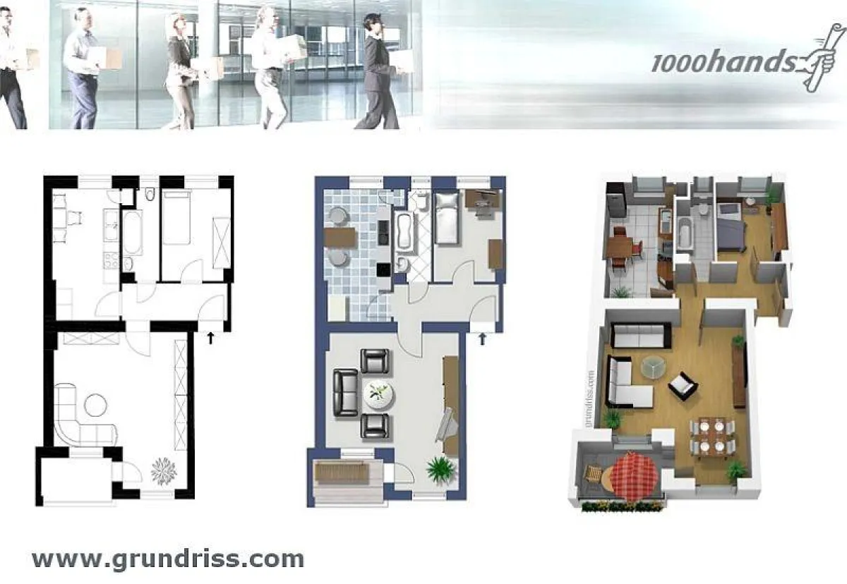 Oft kommt es vor, dass nur alte, teilweise verschlissene oder nicht mehr aktuelle Pläne vorhanden sind. Über den Online-Grundriss-Service der 1000hands AG auf www.grundriss.com, können Sie sich in kürzester Zeit neue Pläne zeichnen lassen, die für Verkauf und Vermietung optimiert sind. Grundlage hierfür sind Ihre alten Pläne oder Handskizzen.
