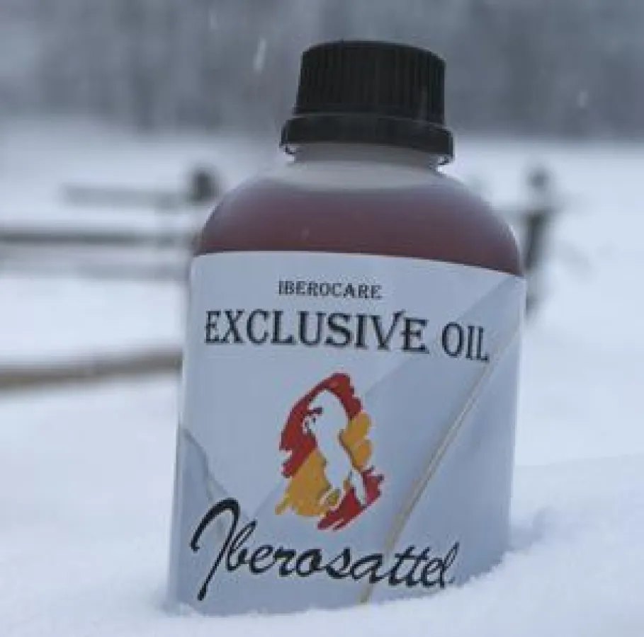 Birgit Thoma, Marketingleiterin bei Iberosattel: „Das neue Lederöl von Ibero kommt direkt aus der Gerberei, die auch die Leder für unsere Sättel herstellt. Vor der Herstellung wird das Leder bereits damit getränkt. Der Reiter hat so die Möglichkeit, seinen Sattel mit dem Originalprodukt zu pflegen.“ Das Lederöl frischt die Farbe auf und hält Juchten und Fettleder lange Zeit geschmeidig. Die Pflegeempfehlung von Birgit Thoma, die selbst regelmäßig im Sattel sitzt: „Wir raten unseren Kunden, ihren Sattel alle zwei Monate dünn mit dem Lederöl einzureiben. Vor allem die Sattelblätter, die stark beansprucht werden.“