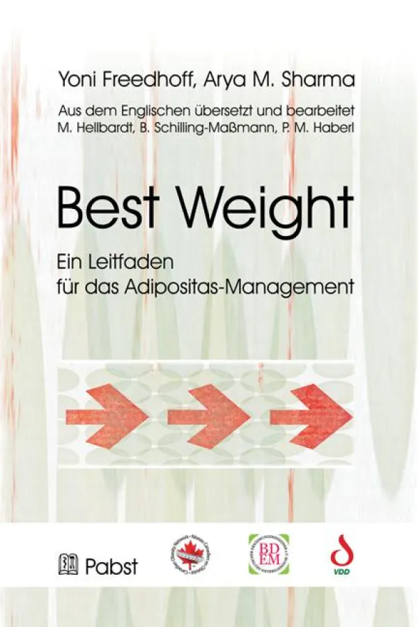 Yoni Freedhoff, Arya M. Sharma (aus dem Englischen übersetzt und bearbeitet von M. Hellbardt, B. Schilling-Maßmann, P.M. Haberl): Best Weight - Ein Leitfaden für das Adipositas-Management. Pabst, 148 Seiten, ISBN 978-3-89967-833-8