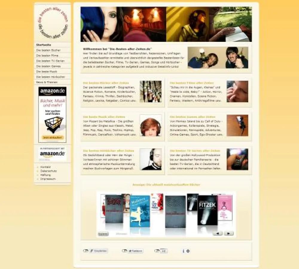 Wer in Zukunft eines der besten Bücher aller Zeiten verschenken will, kann sich seit Februar auf einer neuen Internetadresse orientieren: Auf www.die-besten-aller-zeiten.de sammelt Portalbetreiber websolutions24.net die \"besten\"zeitlosen Bücher, Filme, Hörspiele, Songs und TV-Serien. Was das \"Beste\" ist, ermittelt Portalgründer Marcel Behling (39) anhand eigener Recherchen. Dabei spielen Verkaufszahlen, Bewertungen der Fachwelt und Usermeinungen die entscheidende Rolle. Die ermittelten Bestenlisten werden übersichtlich in tabellarischer Form dargestellt. Zu jedem Medium kann sich der Besucher mithilfe eines Links weitergehende Informationen in einem Online-Lexikon beschaffen.
