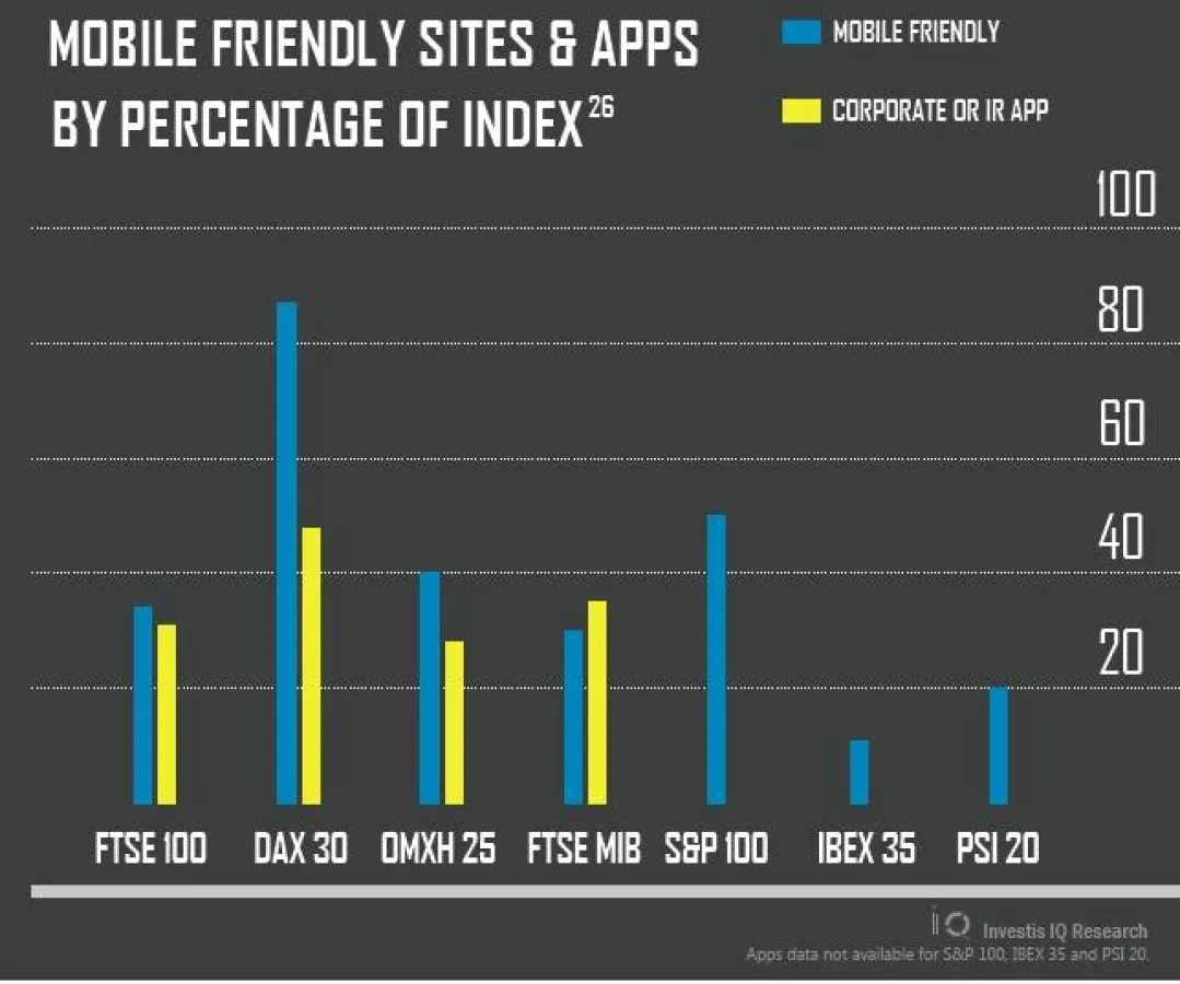 - Beinahe ein Drittel der FTSE 100 Unternehmen hat mittlerweile eine Corporate oder Investor Relations App, im FTSE 250 nur 10 Prozent