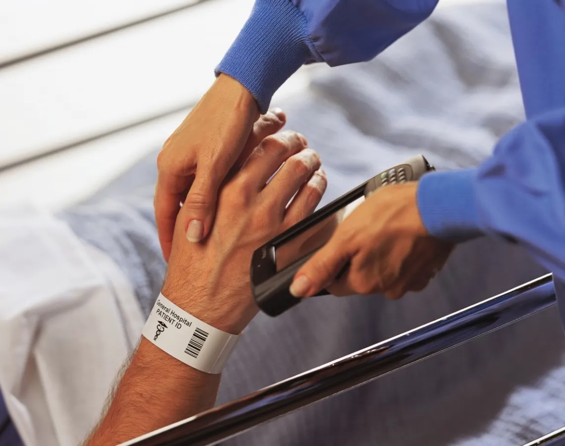 Die Barcodierung spielt dabei eine äußerst wichtige Rolle. Die Patienten können durch ein barcodiertes Armband genau identifiziert und alle gewonnenen Blutproben entsprechend etikettiert werden. Dies könnte z.B. so aussehen, dass direkt bei der Blutentnahme am Krankenhausbett die Daten eingescannt, über einen mobilen QL 320™-Drucker auf Direct 2100™-Etiketten von Zebra ausgedruckt und auf die Blutprobe aufgebracht werden.